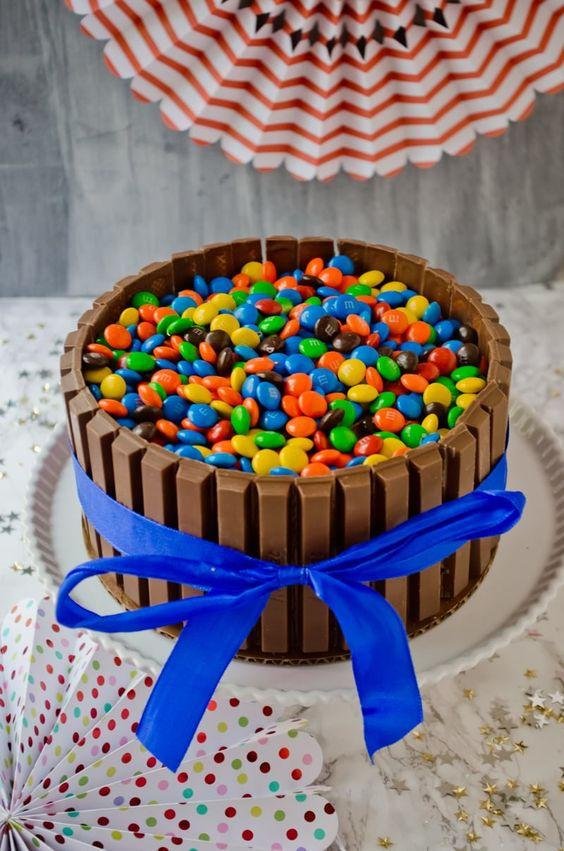 "A rich chocolate cake layered with creamy frosting and topped with crunchy Gems, perfect for chocolate lovers and fun celebrations."